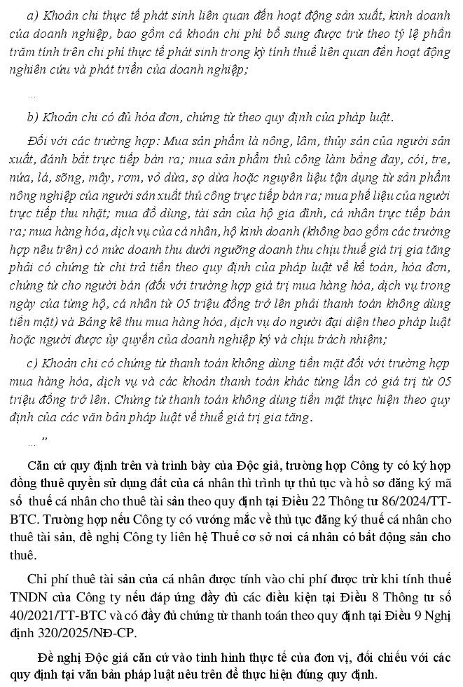 Công ty chúng tôi ký hợp đồng thuê quyền sử dụng đất với cá nhân ông Văn Việt Trung (bên cho thuê). Tuy nhiên, ông Trung không đăng ký được MST cho thuê tài sản do đang đứng tên trên Giấy phép Doanh nghiệp tư nhân tạm ngừng hoạt động đến tháng 06/2026.