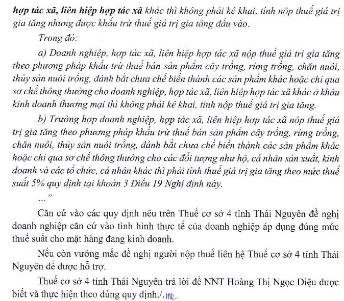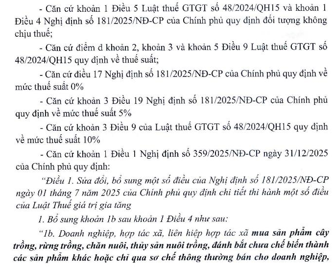 Kính gửi BTC, tôi có câu hỏi liên quan tới NĐ 359/2025/NĐ-CP: DN tôi có sx hàng lâm sản qua sơ chế thông thường đem bán cho DN khác. Trong đó có Dn mua về để sx và có Dn mua về để làm thương mại. Vậy theo nghị định 359/2025/NĐ-CP thì mặt hàng lâm sản DN đã qua sơ chế qua là áp dụng theo mục a là không kê khai tính nộp thuế hay mục b là chịu thuế suất 5% của khoản 1b được bổ sung theo nghị định 359/2025/NĐ-CP về chi tiết thi hành luật thuế GTGT. Xin trân trọng cảm ơn.