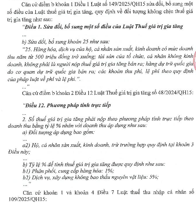 Kính gởi bộ tài chính, tôi ví dụ:1) Nếu tôi có doanh thu cho thuê nhà 900 triệu trong năm 2026, thì thu nhập tính thuế tiền thuê nhà là 400 triệu ( 900 triệu - 500 triệu miễn thuế = 400 triệu) cho cả thu nhập tính thuế TNCN và GTGT có đúng không? và tôi sẽ phải nộp thuế cho thuê nhà là 40 triệu (5% TNCN + 5% GTGT). 2) Nếu doanh thu 900 triệu này thu từ 2 căn nhà cho thuê (mỗi căn thu 450 triệu), địa chỉ 2 căn nhà này trụ ở 2 Phường khác nhau ở TPHCM, cho nên có SỐ ĐUÔI của MST để khai thuế cho thuê 2 nhà sẽ khác nhau. Vậy tôi khai thuế như thế nào? phần miễn thuế 500 triệu sẽ khai cho MST nào? hoặc phân bổ ra sao? Cám ơn