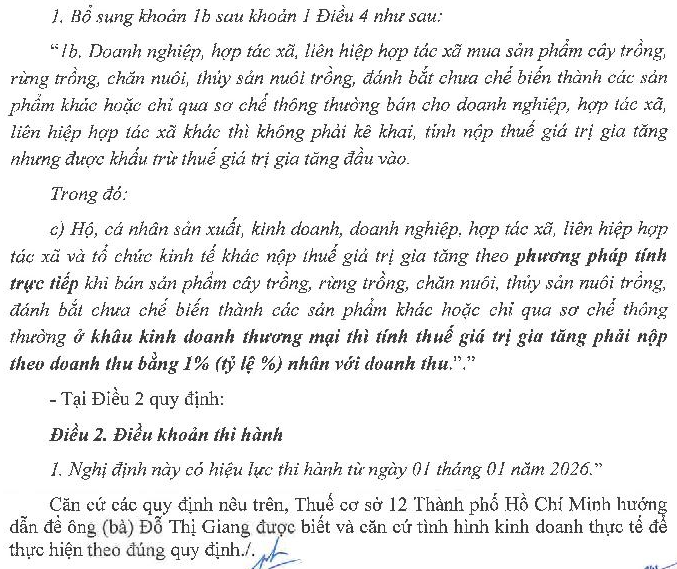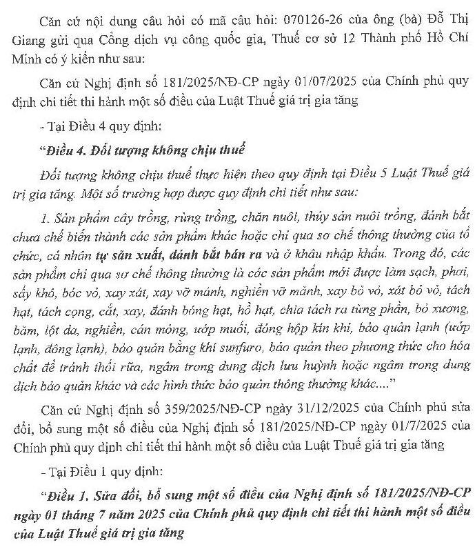 Kính gửi Bộ Tài Chính : Hộ kinh doanh chúng tôi chuyên mua gia súc trâu,bò từ những hộ nông dân về giết mổ và bán lại thịt tươi sống cho các quán ăn, mối chợ. Khi chúng tôi thu mua mặt hàng trâu, bò từ hộ nông dân là mặt hàng không chịu thuế. khi chúng tôi đem mổ và phân phối lại mặt hàng thịt tươi sống có chịu thuế gtgt hay không, hay chỉ chịu 0.5% tncn. Vì căn cứ theo phụ lục Thông tư số 40/2021/TT-BTC ngày 01 tháng 6 năm 2021 của Bộ trưởng Bộ Tài chính) . Thì tôi thấy mục 1 danh mục ngành nghề có để nếu mà hộ kinh doanh và cá nhân kinh doanh thuộc trong những diện sau: Hoạt động phân phối, cung cấp hàng hóa không chịu thuế GTGT, không phải khai thuế GTGT, thuộc diện chịu thuế GTGT 0% theo pháp luật về thuế GTG. THÌ KHÔNG PHẢI TÍNH THUẾ GTGT MÀ CHỈ PHẢI NỘP 0.5% THUẾ TNCN - Thứ hai tôi thu mua trâu, bò về mổ ra và bán thịt tươi sống thì sản phẩm của tôi chỉ mới là sản phẩm sơ chế đúng không. nếu tính thuế gtgt thì là 1% trên doanh thu đúng không - Thứ 3 nếu tôi mua trâu, bò về tự chăn nuôi sau đó đem mổ có phải được miễn thuế gtgt và tncn hay không. hay cần phải có những điều kiện gì để được miễn thuế