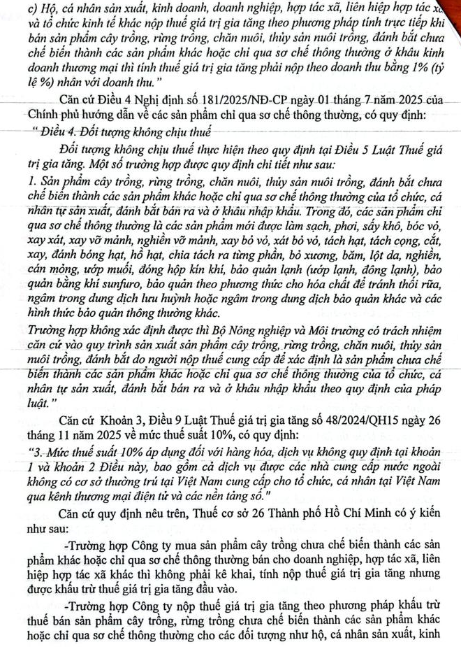 Tôi có câu hỏi gửi đến Quý bộ như sau: Hiện tại công ty chúng tôi có vướng mắc như sau nhờ quý cơ quan hướng dẫn để doanh nghiệp thực hiện cho đúng. Công ty chúng tôi có mua trong nước và nhập khẩu gỗ tròn sau đó cưa, xẻ, sấy thành gỗ xẻ sấy và bán cho các doanh nghiệp chế biến xuất khẩu gỗ, cá nhân kinh doanh, hộ cá nhân kinh doanh kinh doanh . Căn cứ Nghị định 359/2025/NĐ-CP ban hành ngày 31/12/2025 có hiệu lực từ ngày 01/01/2026 và Thông tư 84/2025/TT-BNNMT ban hành ngày 31/12/2025 có hiệu lực từ ngày 01/01/2026 quy định về gỗ sơ chế. Vậy quý cơ quan cho công ty chúng tôi hỏi: + Trường hợp công ty chúng tôi bán cho doanh nghiệp, hộ kinh doanh, cá nhân kinh doanh thì mặt hàng gỗ xẻ tươi, gỗ xẻ sấy (chưa qua bào, ghép, chà nhám…) sẽ áp dụng mức thuế suất bao nhiêu và kê khai tính thuế GTGT như thế nào? + Trường hợp công ty chúng tôi bán cho cá nhân, tổ chức không kinh doanh thì mặt hàng gỗ xẻ tươi, gỗ xẻ sấy (chưa qua bào, ghép, chà nhám….) sẽ áp dụng mức thuế suất bao nhiêu và kê khai tính thuế GTGT như thế nào? + Trường hợp công ty chúng tôi mua gỗ xẻ, hoặc gỗ tròn sẽ được áp dụng mức thuế suất bao nhiêu? Rất mong được sự hướng dẫn trả lời của quý cơ quan để công ty chúng tôi thực hiện đầy đủ nghĩa vụ thuế.
